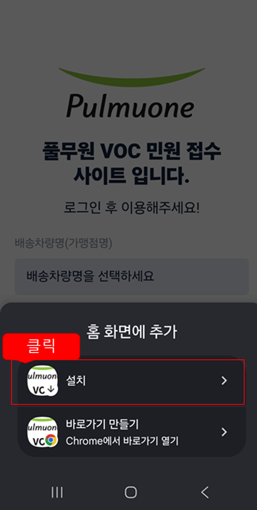 홈화면 바로가기 가이드